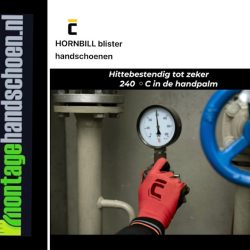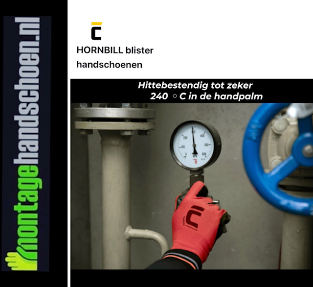Cerva Hornbill blister handschoen erg goed genormeerd en getest tot contactwarmte van 240 ºC in de handpalm